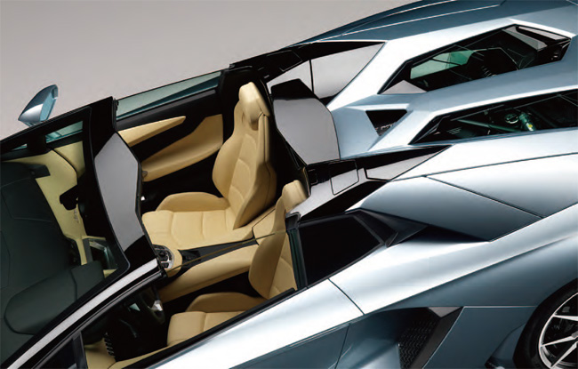 全新設計的幾何線條,從碳纖維可拆卸式活動硬頂,一直延伸至引擎蓋,憑藉車身頂部獨特的輪廓線條,讓Aventador LP 700-4 Roadster具有極高的辨識度。兩件式碳纖維可拆卸式活動硬頂,融合如RTM和Forged Composite等多種高科技材質而組成。這些材料的總重量儘管不超過6公斤,但仍將整體的美學表現和材質的堅固程度最大化,而超輕材質也便於駕駛操作,使其易於安裝或存放於前方的行李箱中,只需數秒即可華麗變身,全方位展現其頂級奢華美感。此外,駕駛也能選配具侵略性的Dione前 20、後21吋輪圈,該輪圈採用