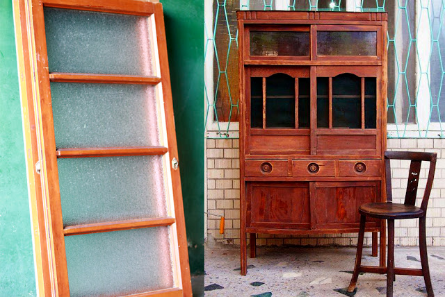 最難處理的一款傢俱就是「菜櫥」,小時候你一定會看過這類保存食物的櫃子,櫃子佈有綠色的網子為了防蒼蠅用,象徵著早期人們惜物的性格,拿來放菜、放醬罐。油煙、醬汁很容易附著在櫃子上,我們就會多加一道清理的工法,通常洗後意外發現是它原始的顏色不像剛送來一樣,跟原本的黑棕色差非常多。有著意外的色彩,往往告知原主他們也會跟我們一樣驚奇。