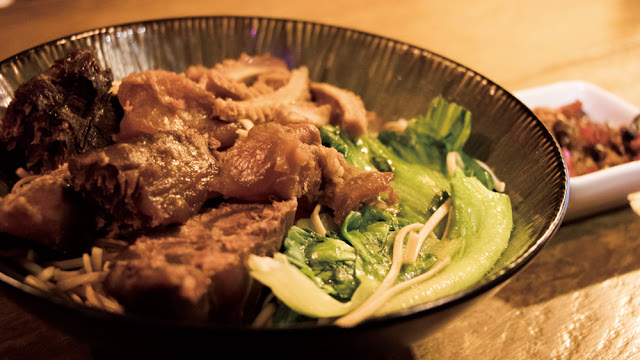 今天想吃些什麼?比煎餅還厚實的蔥油餅,必點的客家小炒,還是牛肉乾拌麵,麵裡牛腱搭上牛肚及牛筋,深怕吃不飽似的滿滿的食材疊在碗上,淋上特製醬油、撒上青蔥,這碗麵視覺、味覺滿分。知悉每個常客的口味擺上辣醬,碗裡的辣醬還是前晚媽媽翻炒而成,吃完了還會貼心的詢問要不要再來點,好像到朋友家用餐一樣再熟識不過。最開心的莫過於點到最後一碗餐,Tyrone的媽媽會把所有食材的精華全放到碗裡,沒有一般餐廳的標準程序配料,盡可能地滿足每個前來的人們。