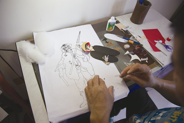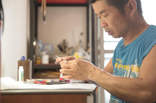 北港朝天宮旁小吃店家林立,全倚賴著朝拜信眾維持生計,所幸主街上有這間廟在,香火與人潮一樣旺盛,養活了世世代代的北港人。做吃的生意幾乎天天都得開市,葉成豐的麵攤亦是如此,日復一日、年復一年,每天凌晨三點起床,賣麵線糊到下午,晚上又繼續備料,這麼忙碌哪來的時間學習!葉成豐說:「有天,真的覺得日子過得太平淡了,經過每天買菜的市場,偶然看到一本紙雕的書覺得好美,買回去學,書裡頭有教你如何做紙雕,每天藉著中午的休息時間練習、累積作品。」這一學十幾個年頭過去,他成了當地的文創紙藝師,北港藝品展覽中總能看到他的身影。