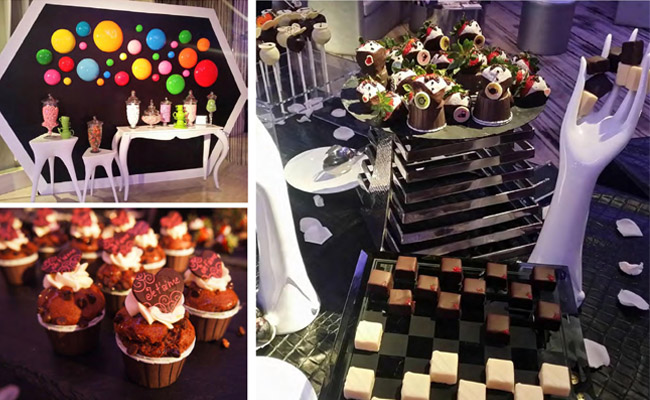 由酒店地下大堂 COCO 餅店行政餅廚所創作的迎賓美點,全以黑白對比色調為設計靈感,加上黑玫瑰、黑白蕾絲和菱格圖案打造的結婚蛋糕,勾勒出時尚型格的婚宴主題。準新人更可以這些甜品作為小回禮,延續婚宴的美味!