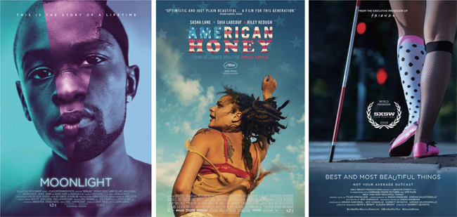 《月光男孩》Moonlight充滿了優雅的影射和不同尋常的結構,《二十世紀女人》20th Century Women描寫了處女潮流變動時刻的一位男孩的心路歷程。《最佳閨蜜》The Edge of Seventeen聚焦於一名充滿了顛覆性哲學思想的高中生。《2016美國甜心》American Honey有志於解構公路片。《怪物來敲門》A Monster Calls充滿了隱喻,一棵神秘的會說話的樹幫助一名年輕的英國男孩救治他母親的疾病。另外必須強調的是,這些電影還具有一些非同尋常的青春片元素。《月光男孩》的主角是一位同性戀傾向的黑人男孩。《2016美國甜心》中的流浪兒來自一個代孕家庭。甚至還有紀錄片的題材表現青春。《最美好的事》Best and Most Beautiful Things記錄了一位二十歲的失明年輕人如何找回自我的故事。